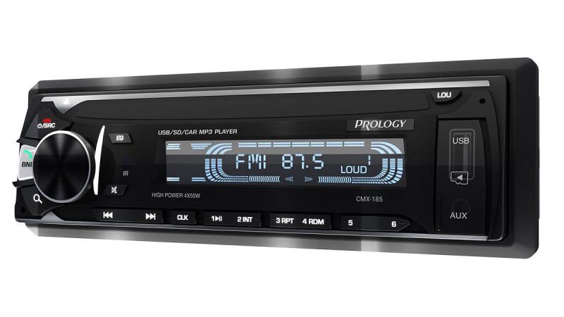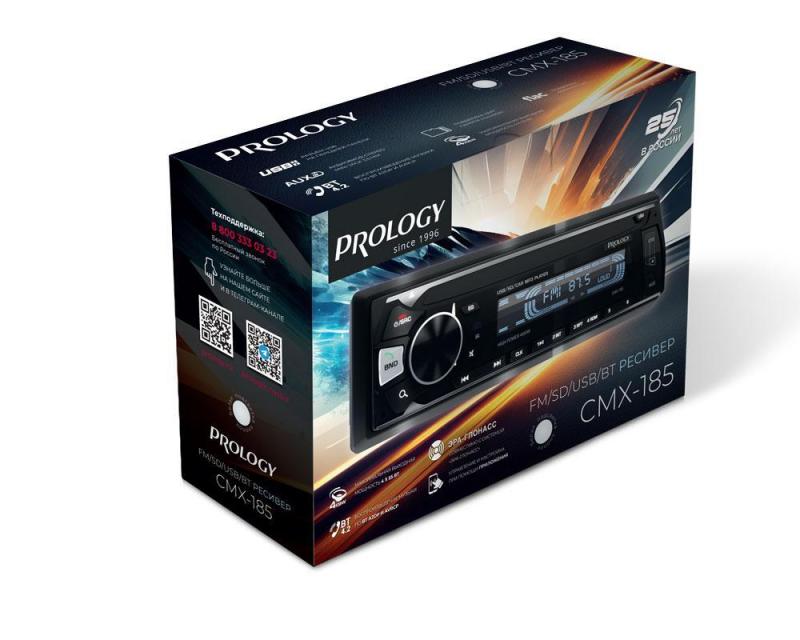 PROLOGY CMX-185 — FM SD/USB ресивер с Bluetooth, это автомагнитола стандартного размера 1DIN, которая обеспечивает прием радиостанций в диапазоне FM, воспроизведение медиафайлов, записанных на карты памяти USB / microSD, передачу звука с внешних источников, а также управление мобильным телефоном через интерфейс Bluetooth (ver. 4,2). Кроме того, устройством можно управлять с помощью приложения PROLOGY MUSIC, установленного на Ваш смартфон с операционной системой Android и iOS.*